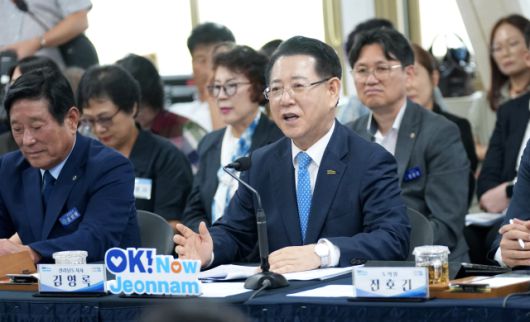 ▲김영록 전남도지사는 8일 오후 2시5분 곡성군청 2층 대통마루에서 열린 '곡성 정책비전 투어' 현장에서 2031년 국제정원박람회 개최 관련 주민 질문에 "국제정원박람회를 곡성으로 유치할 수 있도록 적극 지원하겠다"고 밝혔다.2025.07.08ⓒ전남도 제공 |