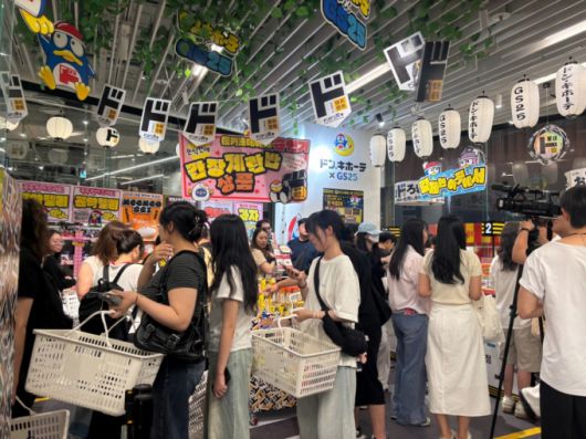 GS25는 일본 최대 디스카운트 스토어 돈키호테와 손잡고 이달 8일부터 약 한 달간 국내 최초로 공동 팝업스토어를 연다. 이번 행사는 일본 돈키호테의 자체 브랜드(PB) '조넷츠(JONETZ)' 상품 50여종과 함께 양사 캐릭터 콜라보(Collaboration) 굿즈를 선보이며 오픈 첫날부터 뜨거운 반응을 끌어냈다.