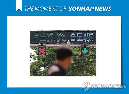 (서울=연합뉴스) 김도훈 기자 = 서울 기온이 근대적인 기상관측을 시작한 이래 7월 상순 기온으론 역대 최고치를 기록한 8일 서울 시내의 한 스크린에 '온도 37.3도'가 표시돼 있다. 2025.7.8 [THE MOMENT OF YONHAPNEWS]