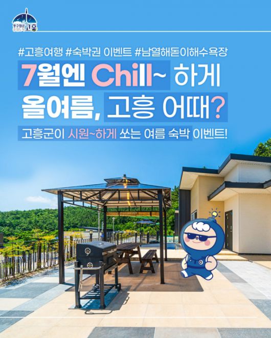 7월엔 칠(Chill)~ 하게 올여름, 고흥 어때 [사진=전라남도 고흥군][전남 광주=팍스경제TV] 전라남도 고흥군은 7월 8일부터 15일까지 8일간 고흥군 공식 SNS 채널을 통해 '7월엔 칠(Chill)하게! 올여름 고흥 어때?' 이벤트를 진행한다고 밝혔습니다.