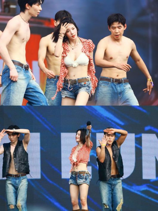 권은비는 지난 6일 고양 킨텍스 야외 글로벌 스테이지에서 열린 '워터밤 서울 2025'에 출연했다. 흰 비키니에 크롭 셔츠와 핫팬츠를 매치한 무대 의상은 현장의 시선을 집중시켰다.