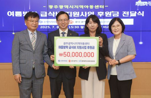 [광주=뉴시스] 송창헌 기자 = 신한라이프가 8일 지역아동센터 아이들의 건강한 성장을 위해 급식비 후원금 5000만원을 광주시에 전달했다.
