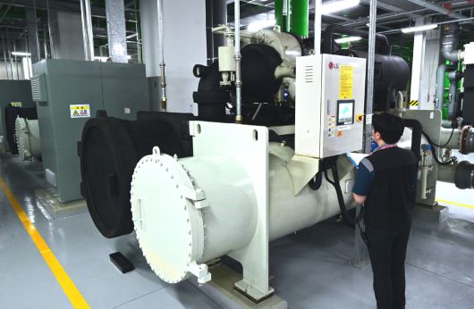 서울 강서구 마곡 LG사이언스파크 메인 기계실에 설치된 터보 칠러의 모습. LG전자 제공 |