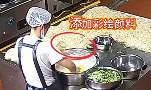 중국 간쑤성 허스페이신유치원에서 원장과 주방 직원이 공모해 급식 반죽에 식용으로 쓸 수 없는 물감을 섞어 납중독 피해 어린이가 220여명 발생했다. 펑파이 갈무리 |