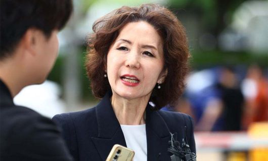이진숙 사회부총리 겸 교육부 장관 후보자가 지난 6월 30일 서울 여의도 한국교육시설안전원에 마련된 인사청문회 준비 사무실로 출근하며 취재진 질문에 답하고 있다. 연합뉴스 |
