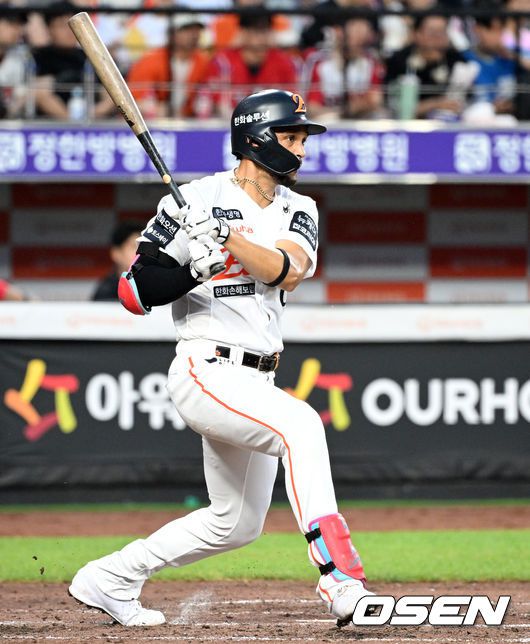 [OSEN=대전, 이대선 기자] 8일 오후 대전 한화생명볼파크에서 2025 신한 SOL Bank KBO리그 한화 이글스와 KIA 타이거즈의 경기가 열렸다. 한화는 문동주, KIA는 윤영철을 선발로 내세웠다. 3회말 무사 1루에서 한화 리베라토가 우전 안타를 치고 있다. 2025.07.08 /sunday@osen.co.kr