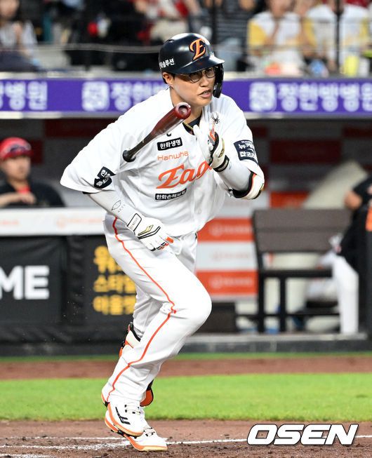 [OSEN=대전, 이대선 기자] 8일 오후 대전 한화생명볼파크에서 2025 신한 SOL Bank KBO리그 한화 이글스와 KIA 타이거즈의 경기가 열렸다. 한화는 문동주, KIA는 윤영철을 선발로 내세웠다. 3회말 1사 만루에서 한화 채은성이 우전 3타점 적시 2루타를 치고 있다. 2025.07.08 /sunday@osen.co.kr