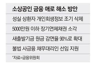 이에 금융위는 이달 중 일반 신용정보 관리규약을 개정해 법원 회생 절차에 대해서도 다른 채무조정제도와 같이 공공정보를 조기에 삭제할 수 있는 근거를 마련하겠다고 밝혔다. 1년간 채무를 착실하게 상환하면 공공정보 공유 기간을 현재 최대 5년에서 1년으로 단축한다.