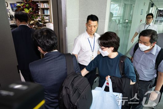 윤석열 전 대통령 배우자 김건희 여사와 관련한 의혹을 수사하는 민중기 특별검사팀이 8일 '공천개입 의혹'과 관련 윤상현 국민의힘 의원에 대한 압수수색을 진행중인 가운데 서울 여의도 국회 의원회관 윤 의원 사무실로 특검 관계자들이 들어서고 있다. 2025.7.8/뉴스1 ⓒ News1 유승관 기자 |