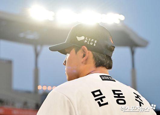 (엑스포츠뉴스 대전, 김한준 기자) 8일 오후 대전 한화생명 볼파크에서 열린 '2025 신한 SOL Bank KBO리그' KIA 타이거즈와 한화 이글스의 경기, 3회말 한화 문동주가 몸을 풀고 있다.김한준 기자 kowel@xportsnews.com