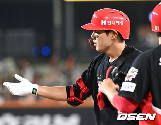[OSEN=대전, 이대선 기자] 8일 오후 대전 한화생명볼파크에서 2025 신한 SOL Bank KBO리그 한화 이글스와 KIA 타이거즈의 경기가 열렸다. 한화는 문동주, KIA는 윤영철을 선발로 내세웠다. 7회초 2사에서 KIA 오선우가 안타를 치고 환호하고 있다. 2025.07.08 /sunday@osen.co.kr