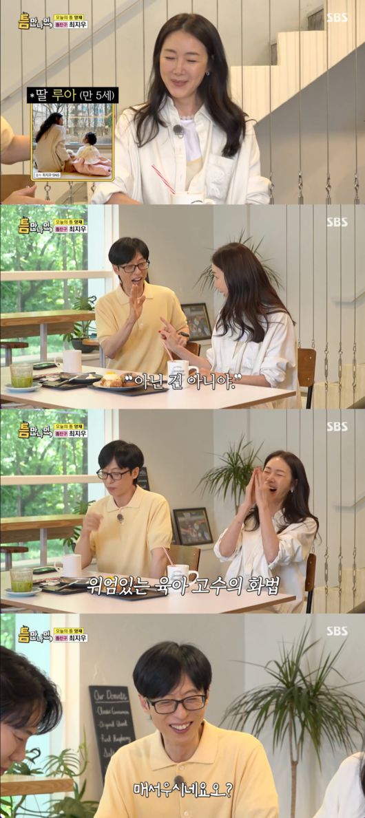 [OSEN=박근희 기자] '틈만 나면,’ 방송인 유재석이 배우 최지우의 깐깐한 모습을 언급하며, 반전 육아 면모를 공개했다.
