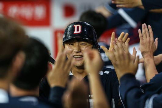 두산도 추격에 나섰다. 6회초 정수빈이 우월 2루타를 터뜨리자 양의지가 좌중간 적시타로 화답했다. 두산은 오른쪽 대퇴부 근육통을 호소한 양의지를 대주자 김준상과 교체했다. 추가 득점은 없었다. 김재환이 1루수 땅볼 아웃으로 물러나면서 두산의 공격이 종료된 것.