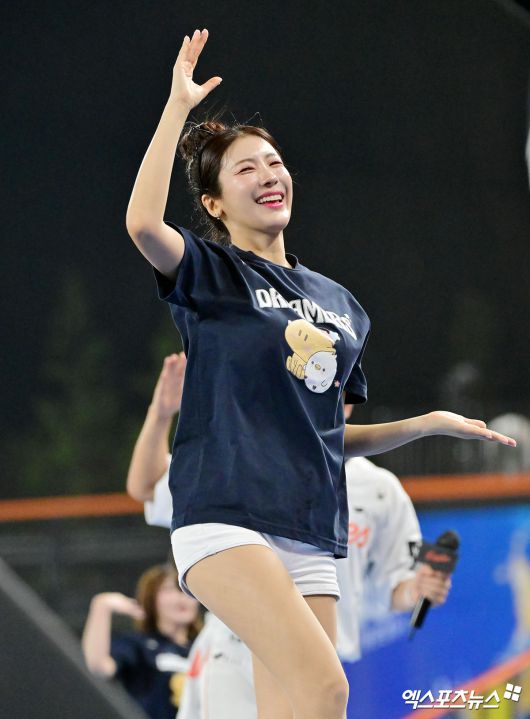 (엑스포츠뉴스 대전, 김한준 기자) 8일 오후 대전 한화생명 볼파크에서 열린 '2025 신한 SOL Bank KBO리그' KIA 타이거즈와 한화 이글스의 경기, 한화가 16안타를 몰아치며 KIA에 14:8로 승리했다. 한화 김연정 치어리더가 열띤 응원을 선보이고 있다.김한준 기자 kowel@xportsnews.com
