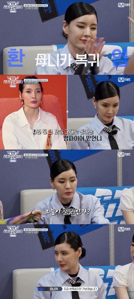 모니카는 “100%가 아닌 것 같아서 아쉽다. 오랜만에 올라가니까 잡생각도 많아지고 두려움도 생겼다. 집중하는 데 시간이 걸렸다. 멤버들한테 피해가 가지 않게 최선을 다하자고 생각했다”라며 의지를 불태웠다.
