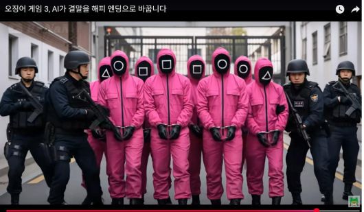 ‘오징어 게임’ 시즌3을 시청한 팬들이 인공지능(AI) 프로그램을 활용해 결말을 바꾼 영상 콘텐츠 창작물. 유튜브 캡처 |