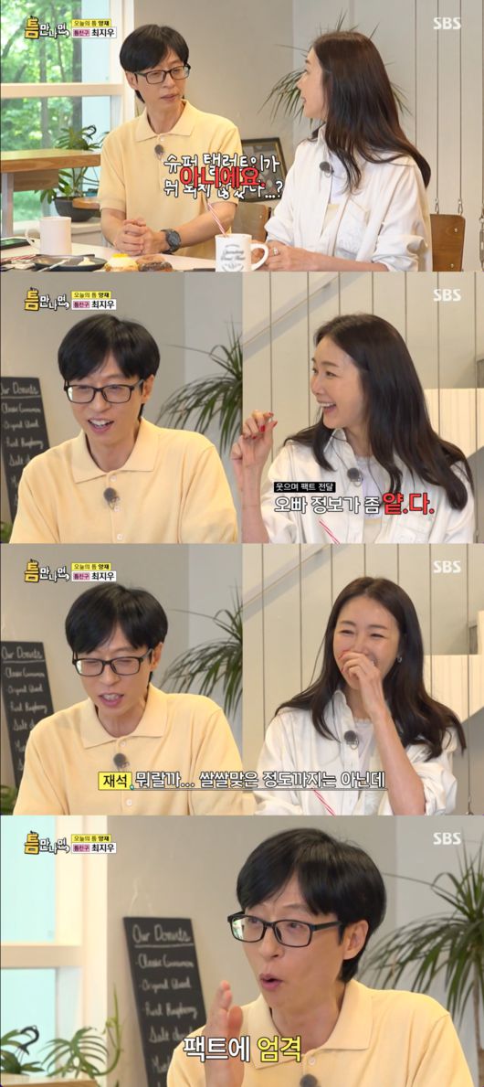 8일 전파를 탄 SBS 예능 프로그램 '틈만 나면,'에서는 '틈 친구'로 배우 최지우가 출격했다.