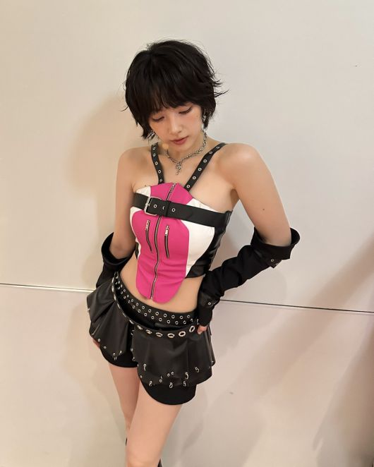 사진 속 강지영은 단발머리에 홀터넥 스타일의 의상과 미니스커트를 입고 포즈를 취하는 모습이다. 여전한 아이돌 미모에 늘씬한 라인을 드러내 시선을 사로잡는다.