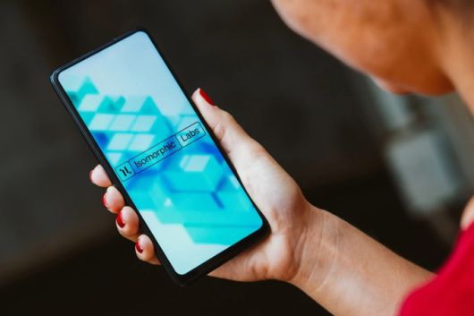 스마트폰에 뜬 아이소노픽 랩스 로고 [사진=블룸버그] |