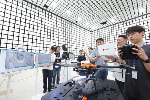 인천 송도 RAPA IoT기술지원센터에서 LG유플러스 직원들이 레드캡 기술로 연결된 드론을 시험하고 있는 모습. [LG유플러스 제공. 재판매 및 DB 금지] |