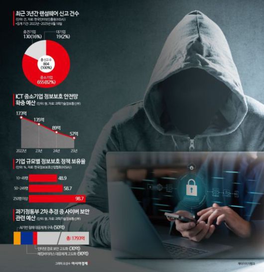 중소기업을 겨냥한 해킹 피해가 갈수록 심각해지는 가운데 예방을 위한 정책은 점점 더 오그라드는 형국이라 우려가 높아진다. 정부가 인공지능(AI)과 AI 전환(AX) 등 유망한 기술을 육성하는 데 집중하는 사이 중소기업의 정보보안은 관련 예산의 축소와 미흡한 정책 탓에 사각지대로 내몰리는 분위기다.