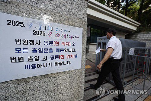 (서울=연합뉴스) 임화영 기자 = '12·3 비상계엄' 사태 관련 윤석열 전 대통령의 재구속 여부를 결정 지을 영장실질심사가 열리는 9일 서울중앙지법의 출입이 제한되고 있다.