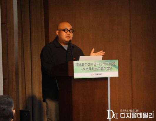 송찬규 한국레드햇 솔루션 아키텍트는 지난 8일 <디지털데일리>가 명동 은행연합회관 대회의실에서 개최한 ‘포스트 가상화 인프라 전략 2025 행사’에서 “인공지능(AI) 기술이 업계 안팎에서 화두인 것 못지않게 가상화 분야도 정보기술(IT) 인프라나 운영 관점에서 중요한 주제”라며 이같이 밝혔다.