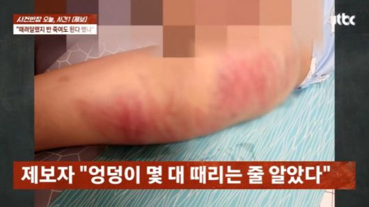 지난 8일 JTBC '사건반장'은 제보자 A씨로부터 받은 사진을 보도했다. 사진에는 온몸이 피멍으로 가득한 초등학생의 모습이 담겼다.