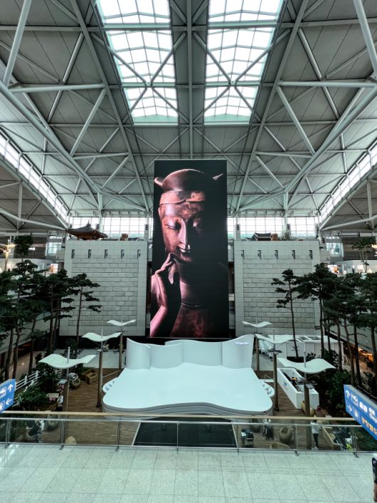 [서울=뉴스핌] 최문선 기자 = 인천국제공항 실감콘텐츠 '국보 반가사유상'. [사진=국립중앙박물관] 2025.07.09 moonddo00@newspim.com |