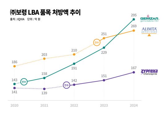 보령은 LBA 전략을 통해 글로벌 제약사 일라이 릴리로부터 2020년 항암제 '젬자(성분명 젬시타빈)', 2021년 조현병 치료제 '자이프렉사(성분명 올란자핀)', 2022년 '알림타(성분명 페메트렉시드)' 등 오리지널 품목에 대한 국내 권리를 순차적으로 인수, 내재화하는데 집중해왔다.