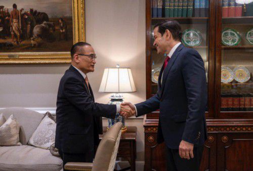 Wi Sung-rak, South Korea’s national security advisor, shakes hands with U.S. Secretary of State and National Security Advisor Marco Rubio during a security consultation in Washington, D.C., on July 7. / Source: Presidential Office |