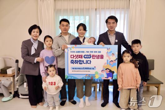 최재형 보은군수가 한 가정을 찾아 다섯째 아이 탄생을 축하하고 있다. (보은군 제공, 재판매 및 DB금지) /뉴스1 |