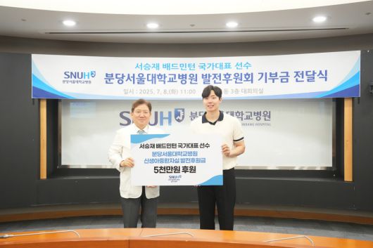 분당서울대병원은 배드민턴 국가대표 서승재 선수가 8일 병원에 5000만 원의 후원금을 기부했다고 9일 밝혔다.