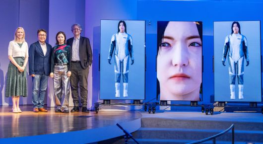 구겐하임 미술관 내 원형극장에서 진행된 설명회에서 관객들은 77형 LG 올레드 에보(evo) 6대를 통해 김아영 작가의 대표작 '딜리버리 댄서' 시리즈 속 주인공 '에른스트 모'와 '엔 스톰'을 만났다.