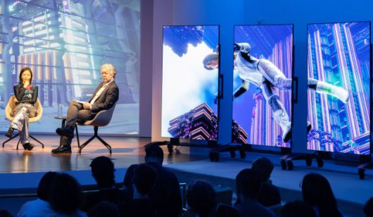 미술관 내 원형극장에서 진행된 설명회에서 작가의 대표작 ‘딜리버리 댄서’ 시리즈 속 주인공 ‘에른스트 모(Ernst Mo)’와 ‘엔 스톰(En Storm)’가 77형 LG 올레드 에보(evo) 6대를 통해 구현됐다.