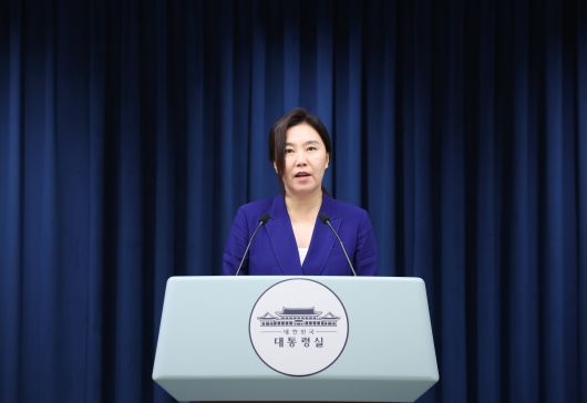 강유정 대통령실 대변인이 8일 서울 용산구 대통령실 청사에서 국무회의 관련 브리핑을 하고 있다./뉴스1 |