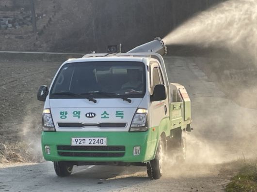 구제역 방역 소독 장면/사진제공=영암군 |