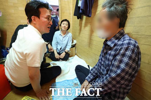 [더팩트ㅣ임영무 기자] 김민석 국무총리가 9일 오전 대전 동구 쪽방촌의 한 독거 어르신 가정을 방문해 애로사항을 청취하고 있다.