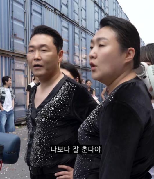 (서울=뉴스1) 안태현 기자 = 가수 싸이가 코미디언 이수지와 함께한 '흠뻑쇼' 오프닝 영상 촬영 현장 비하인드를 공개했다.