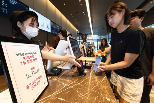 서울시 종로구에 위치한 폴바셋 매장에서 7월 멤버십 달달혜택을 이용하는 고객들. 사진ㅣKT |