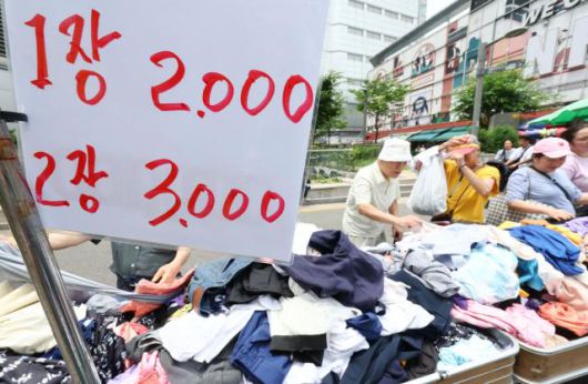 고물가·고금리가 이어지며 내수시장이 계속해서 어려움을 겪고 있는 서울 동대문 평화상가 앞 일대에서 열린 동대문 일요시장을 찾은 시민들이 저렴한 제품들을 살펴보고 있다. [사진=연합뉴스] |