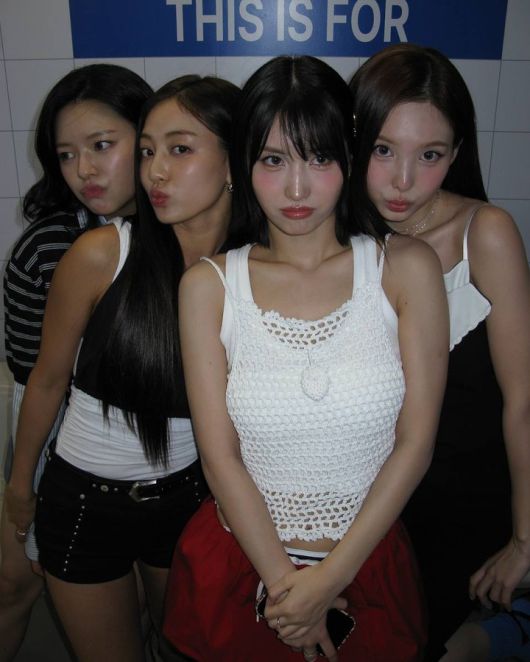 지효는 동일 그룹 멤버들과 함께 찍은 사진을 공개해 팬들의 기대감을 한껏 끌어올렸다. 네 명 모두 카메라를 향해 장난스럽게 입을 내민 모습에서 걸크러시와 장난꾸러기 무드가 공존한다.