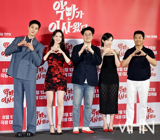 (MHN 이지숙 기자) 배우 임윤아, 안보현, 이상근 감독, 주현영, 성동일이 9일 오전 서울 용산구 CGV용산아이파크몰에서 열린 영화 '악마가 이사왔다' 제작보고회에 참석했다.