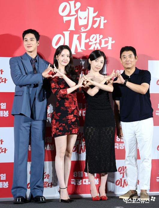 (엑스포츠뉴스 고아라 기자) 9일 오전 서울 용산구 CGV용산아이파크몰에서 영화 '악마가 이사왔다' 제작보고회가 열렸다. 배우 안보현, 임윤아, 주현영, 성동일이 제작보고회에 참석해 포토타임을 갖고 있다. 고아라 기자 iknow@xportsnews.com