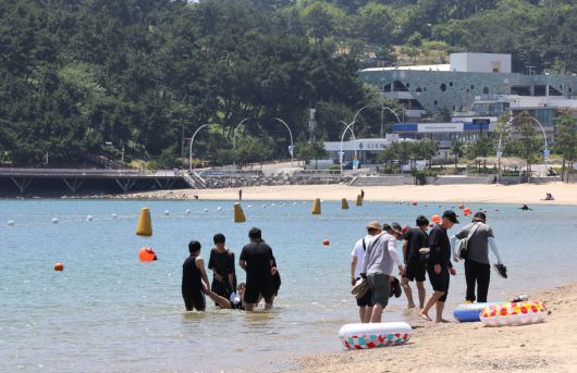 폭염특보가 내려진 지난 5일 울산 동구 일산해수욕장을 찾은 피서객들이 물놀이를 하고 있다. 이날 울산의 낮 최고기온은 36도로 예보됐다. 연합뉴스 |
