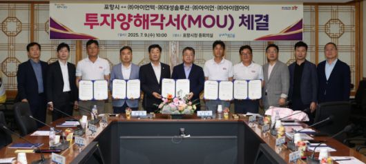 경북 포항시는 9일 시청 중회의실에서 지역 철강기업 4개사(㈜아이언텍, ㈜대성솔루션, ㈜아이언, ㈜아이엠아이)와 총 290억 원 규모의 투자양해각서(MOU)를 체결했다.