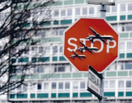 [헤럴드경제=김현경 기자] 2023년 10월 가자전쟁이 격화된 지 두 달쯤 지난 뒤 뱅크시는 정지 신호판 위에 위협적인 형상으로 날아가는 군용 드론 세 대를 그렸다. 인스타그램을 통해 뱅크시의 작품 인증을 확인한 두 남자는 시끌벅적한 사람들 가운데 드론이 그려진 신호판을 훔쳐 가려 했다. 두 남자를 지켜보던 사람들은 어리둥절해져 그 장면을 촬영했다. 한 남자는 유유히 절단기를 가져와 작업을 마쳤다.