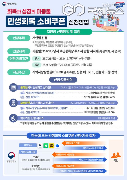 (천안=국제뉴스) 이원철 기자 = 천안시는 오는 21일 부터 정부의 경기 진작 최우선 정책인 민생회복 소비쿠폰 신청·지급을 민생경제 회복을 위해 모든 시민에게 '민생회복 소비쿠폰'을 신청·지급한다고 밝혔다.