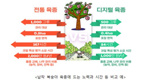 [더팩트ㅣ세종=박은평 기자] 복숭아 개발에 디지털 육종 기술이 본격 도입된다. 부대비용과 노동력 투입 시간은 절반으로 줄고 다양한 품종 개발로 소비자의 선택 폭은 넓어질 전망이다.