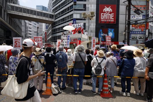 3일 일본 도쿄 거리에서 시민들이 일본공산당의 참의원 선거 유세를 지켜보고 있다./EPA 연합 |